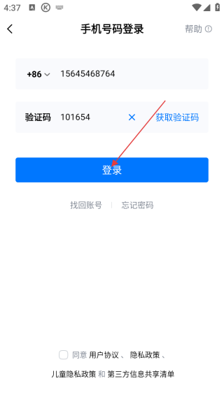 4、填好手机号与验证码后,点击【登录】按钮,完成登录操作。