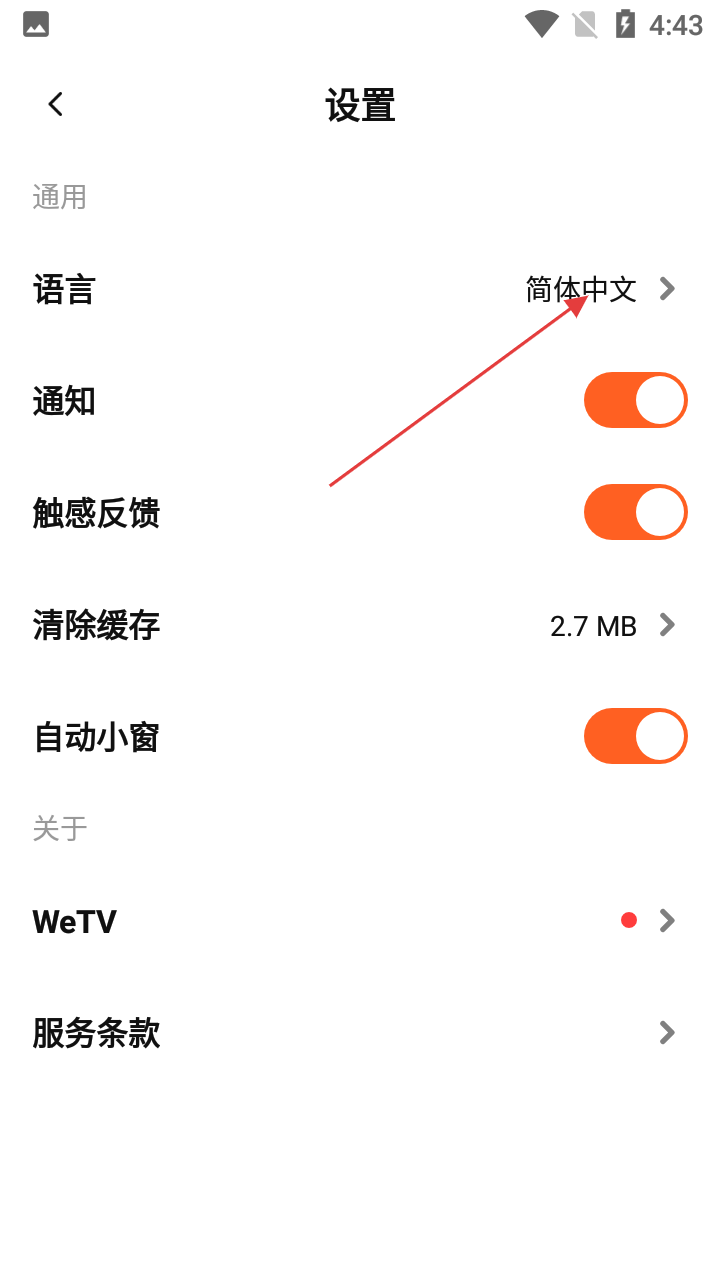 3、在设置页面,有【语言】【通知】等选项,点击【语言】,进入语言选择界面。