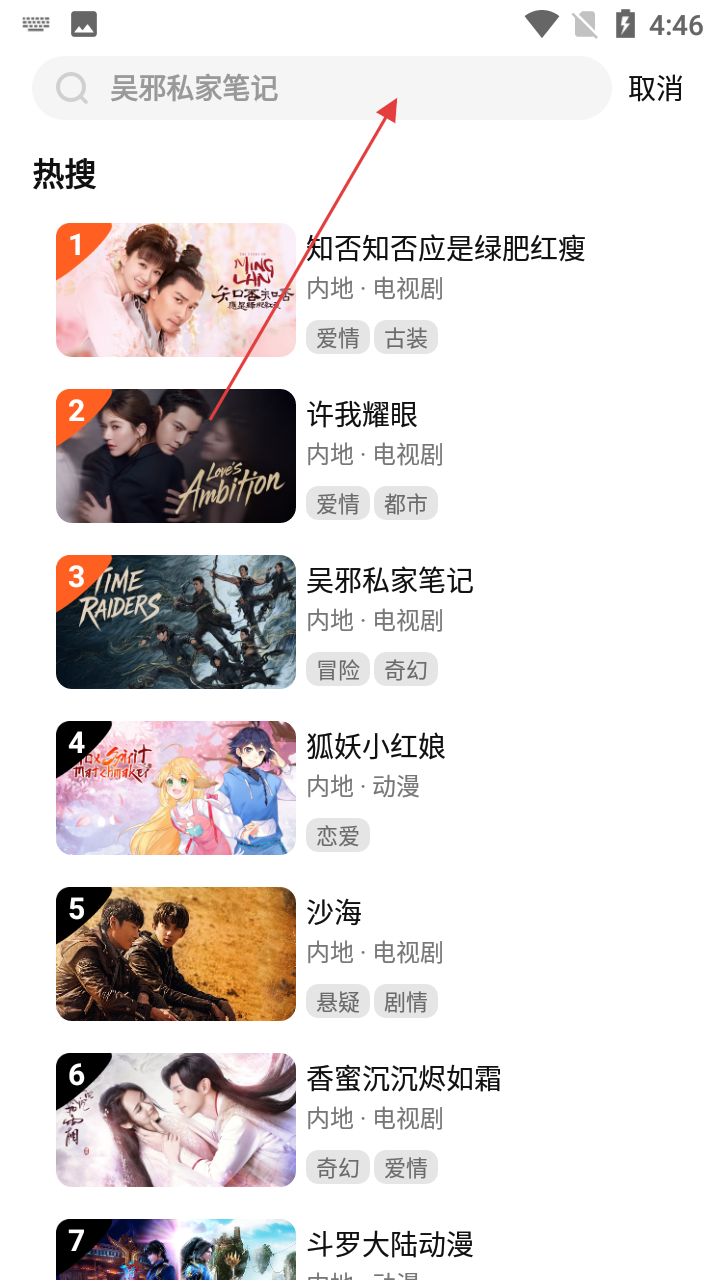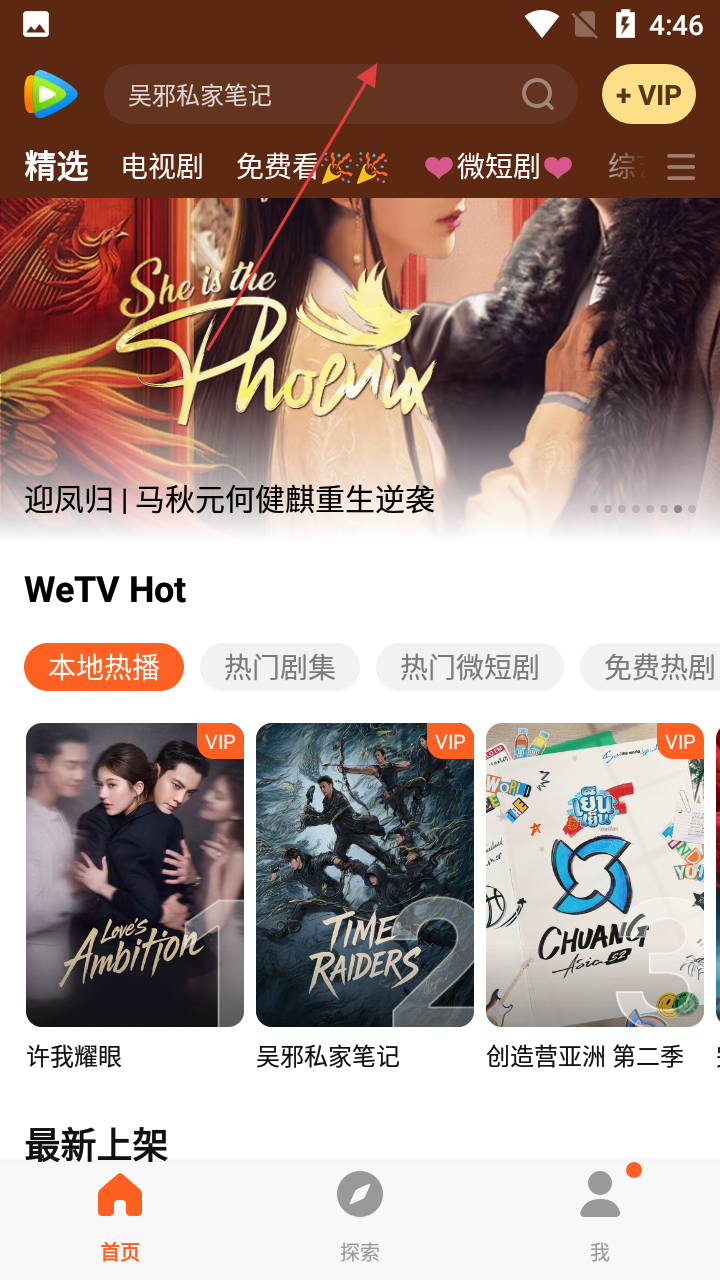 1、打开WeTV,进入首页,能看到影视推荐,点击顶部【搜索框】,进入搜索页面。