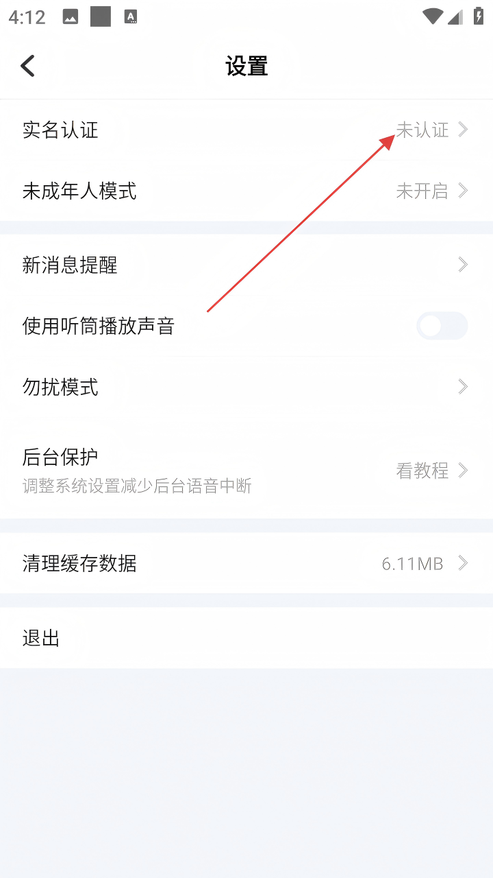 4、进入设置页面后,点击【实名认证】,按照提示完成实名认证操作。