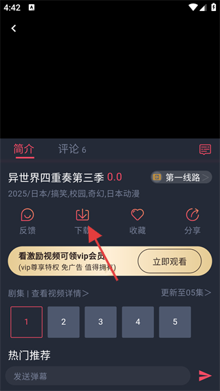 3、切换到【日本动漫】分类,可查看《异世界四重奏第三季》等热门推荐动漫,点击进入动漫播放页。