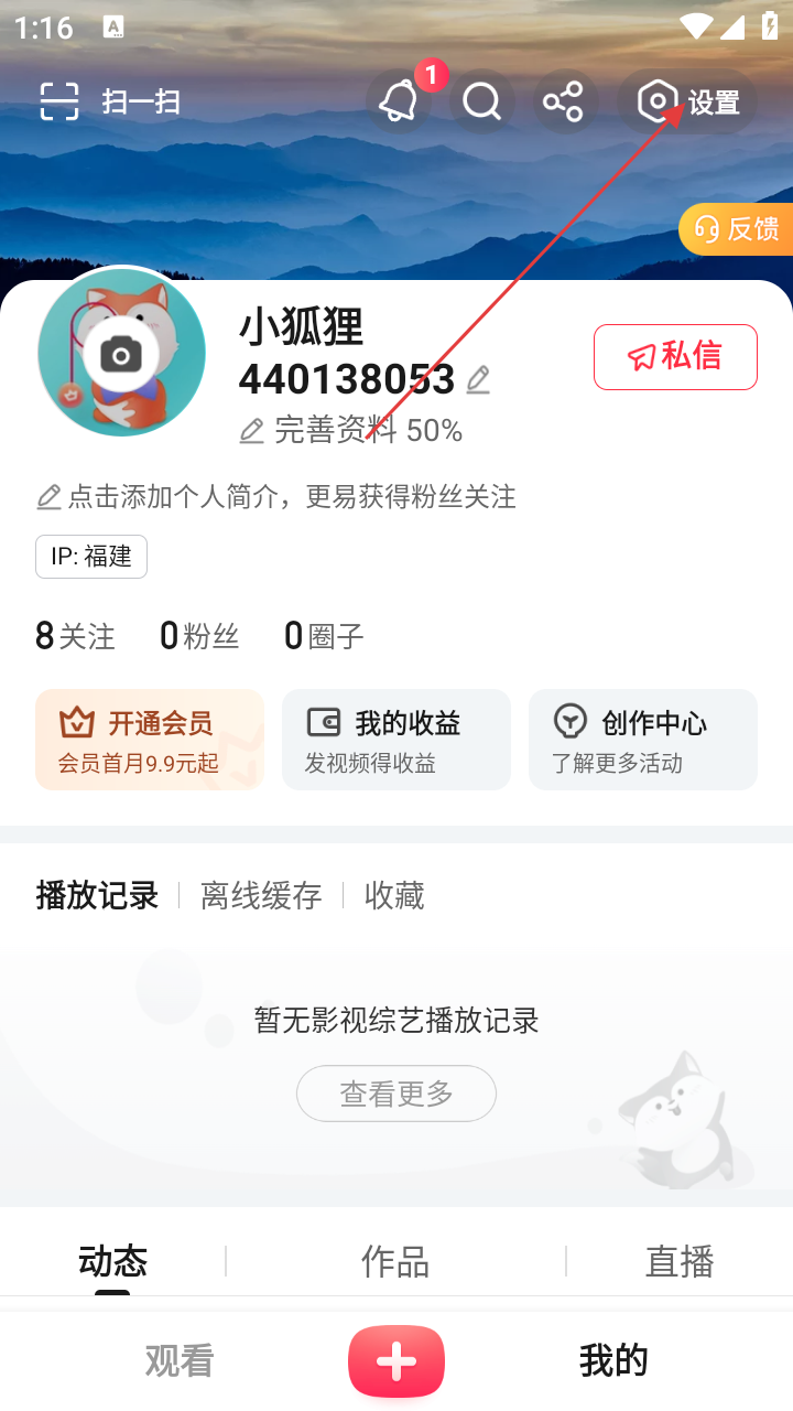 1、打开搜狐视频,点击底部【我的】,进入个人页面。