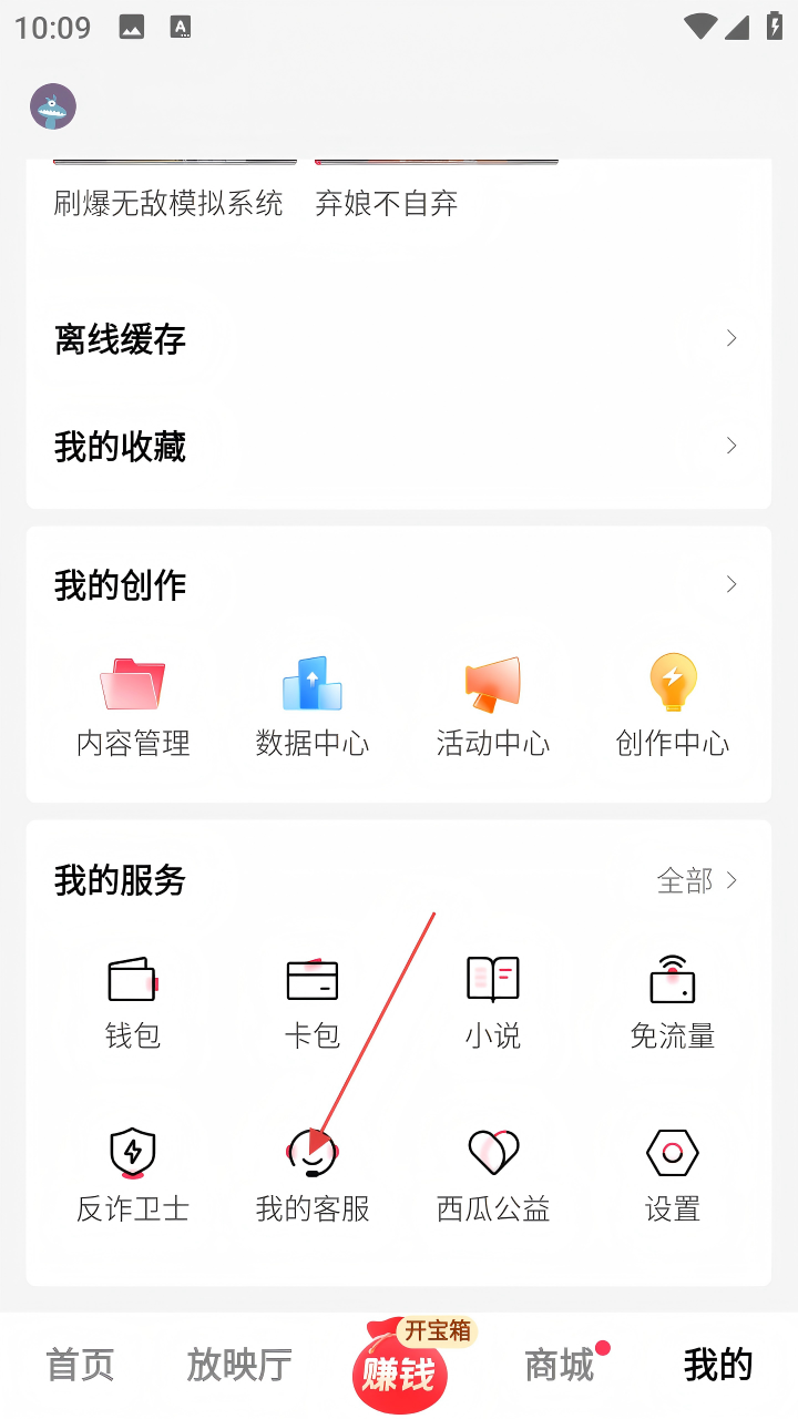2、在个人页面中,找到【我的客服】选项并点击,进入客服中心页面。