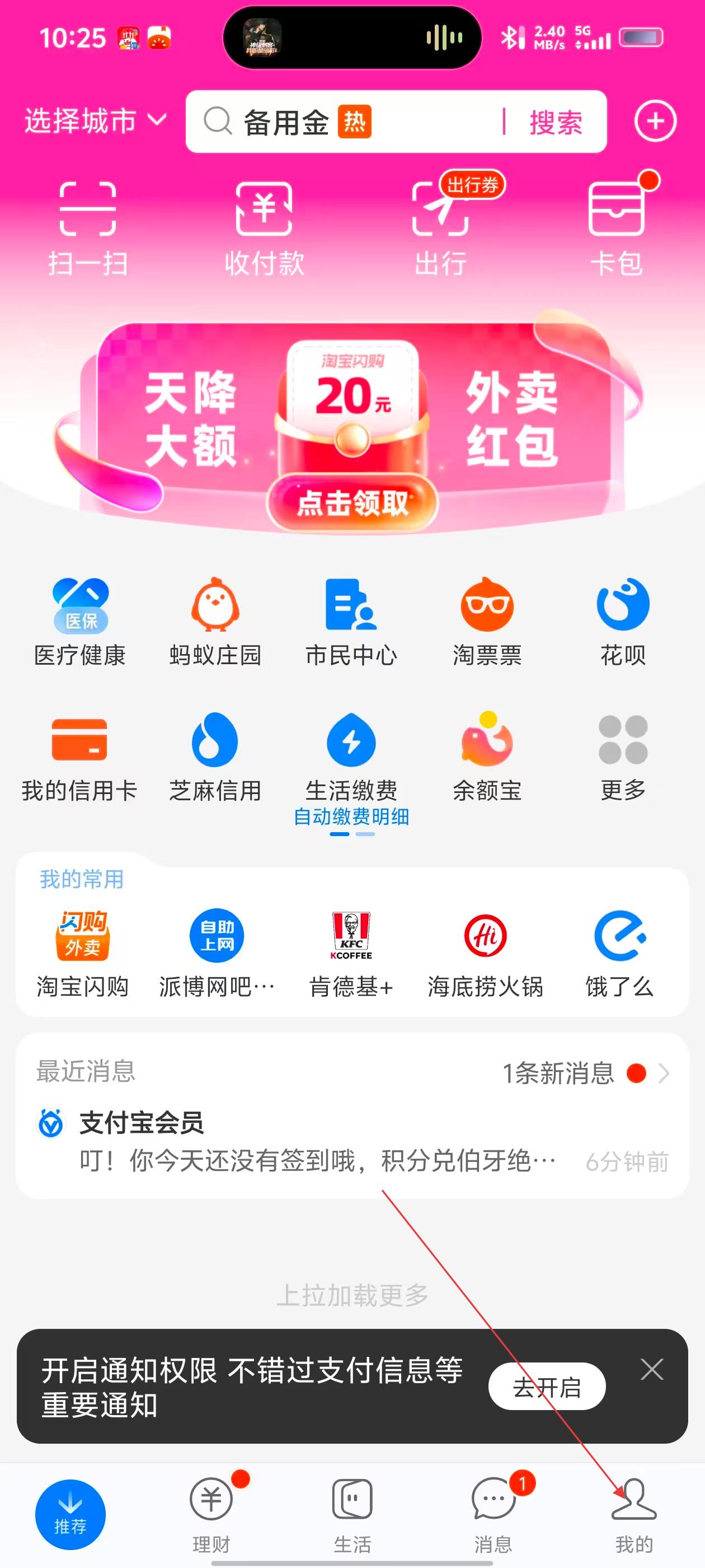 1、打开支付宝APP,进入主界面后,点击右下角【我的】按钮,进入个人相关页面。