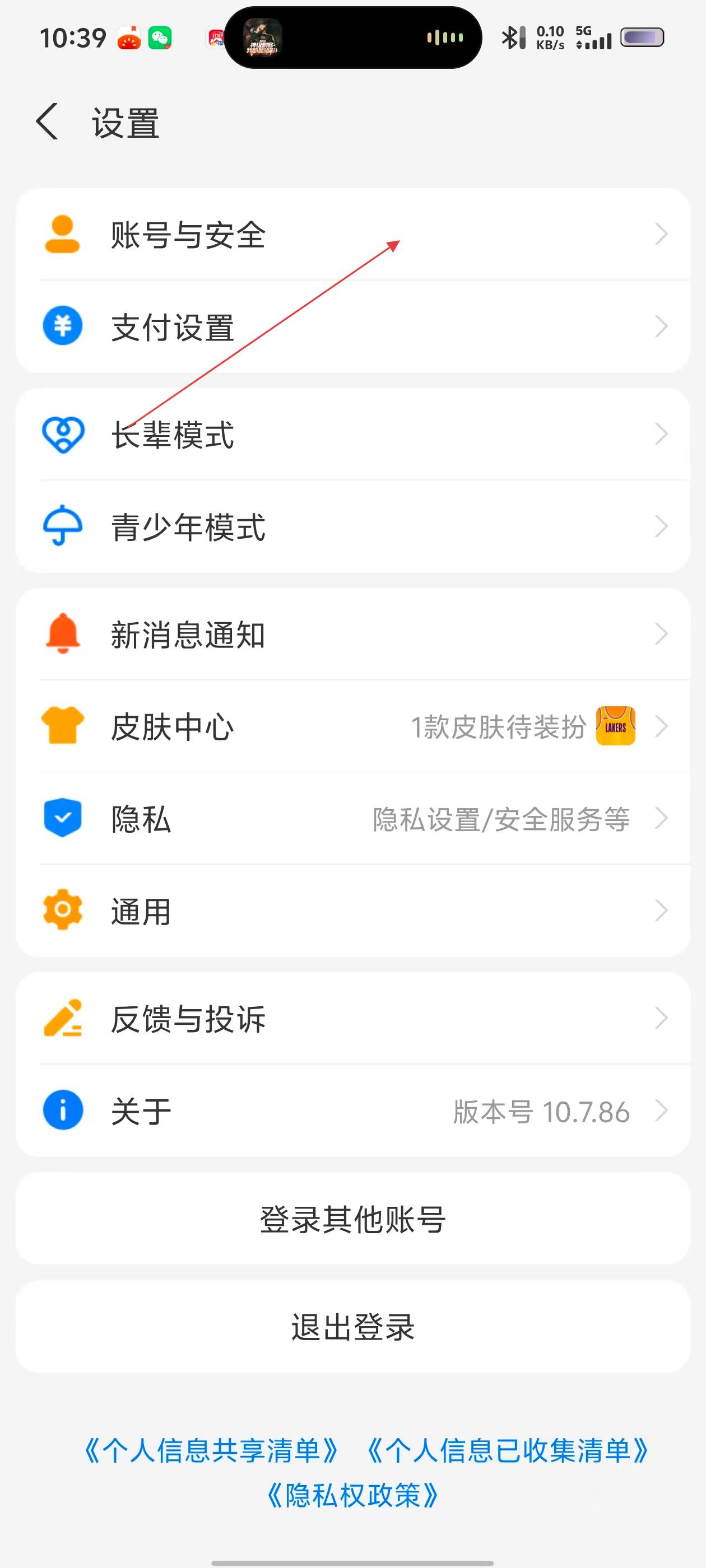 3、在设置页面,找到并点击【账号与安全】选项,进入相关设置流程。