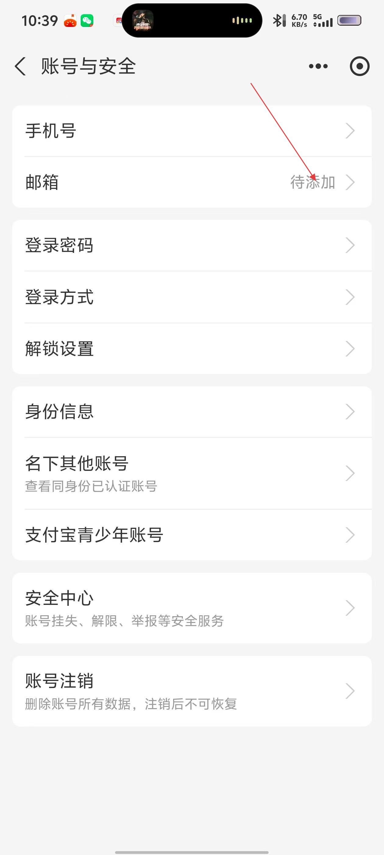 4、进入账号与安全页面后,点击邮箱即可绑定邮箱账号。