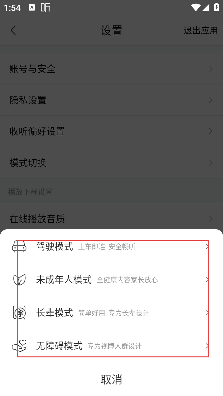 4、在模式切换选项中,选择【驾驶模式】【未成年人模式】【长辈模式】或【无障碍模式】进行切换。