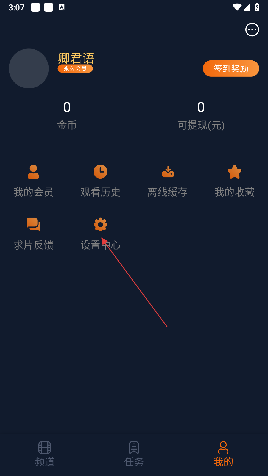 2、在【我的】页面,点击【设置中心】,可进入设置界面,进行账户安全等设置操作。