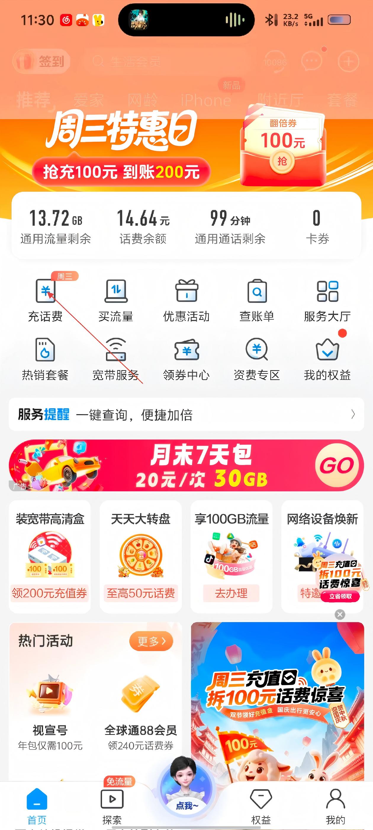 2.用户只需在主界面点击“话费充值”图标,即可进入充值界面。