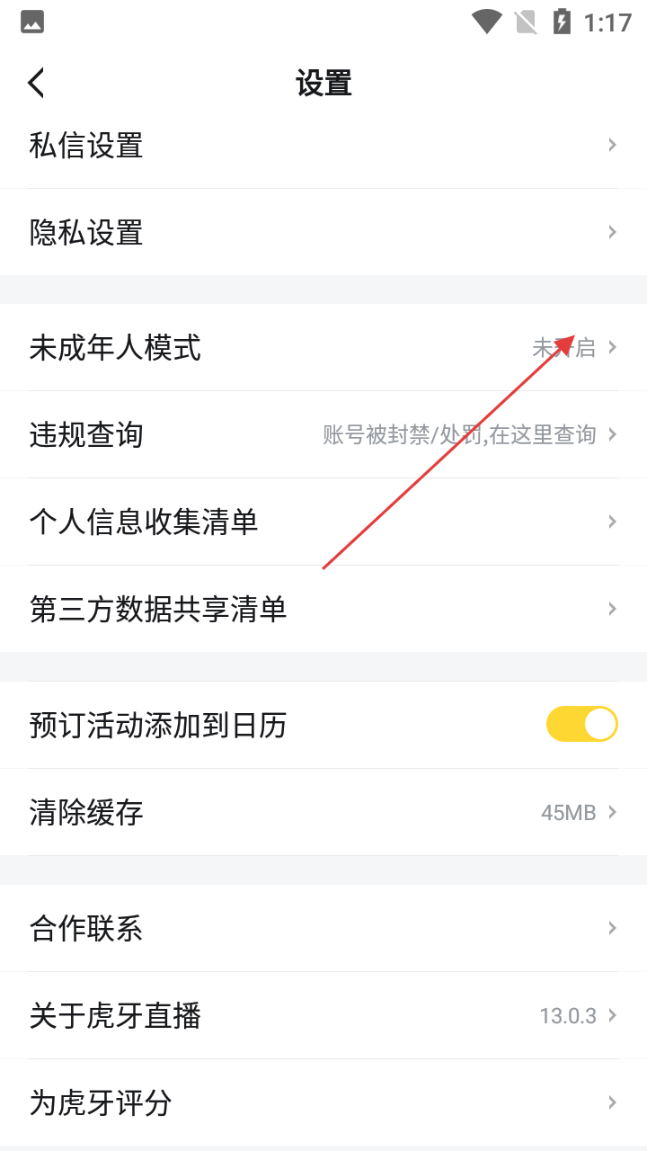 3、在设置页面中,找到【未成年人模式】选项并点击,进入未成年人模式设置界面。