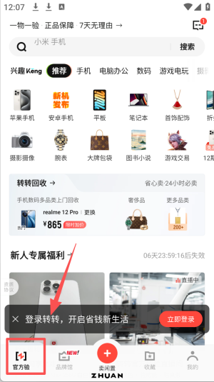 1、访问官方验:在首页点击“官方验”图标,进入正品保障购物页面。