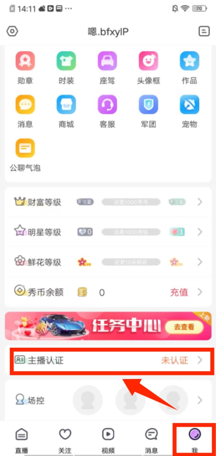 4、打开 “我” 的页面,在个人功能区找到 “主播认证” 选项,可查看认证状态并启动认证流程。