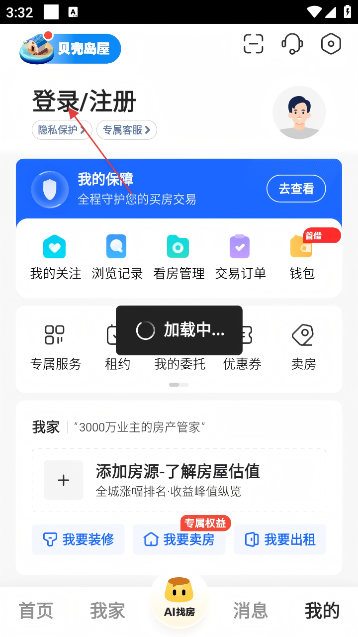 1、打开贝壳找房APP,进入首页后,点击右下角【我的】。