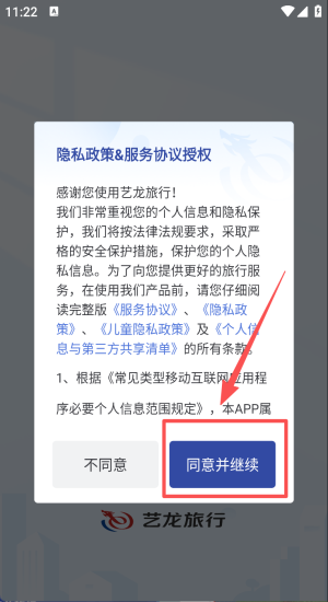 1、阅读隐私政策后点“同意并继续”,授权信息保护条款完成初始化。