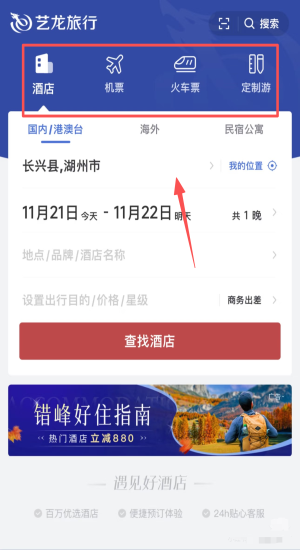 2.用户可根据自己的出行目的和预算,在艺龙旅行上查找并预订满意的酒店。