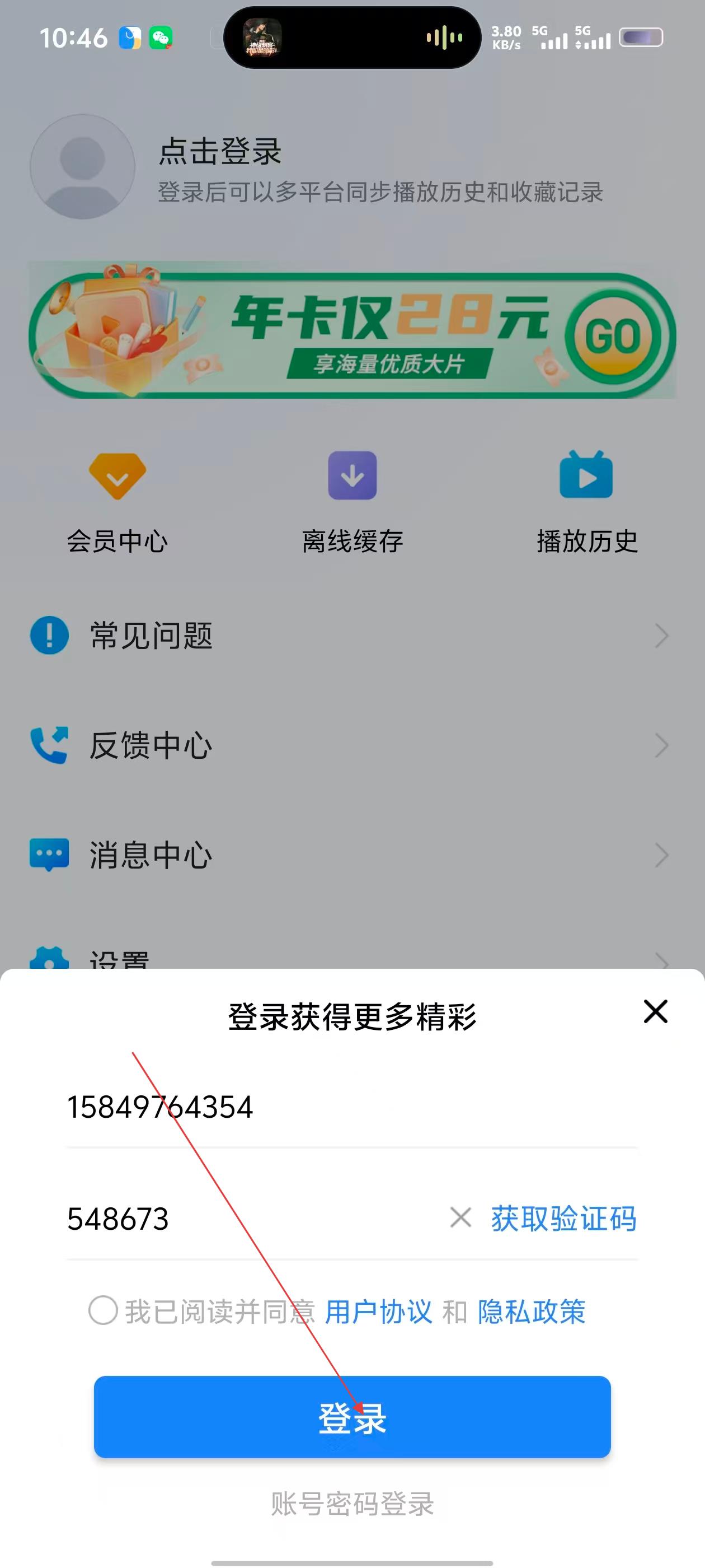 4、在登录弹窗中,输入手机号、验证码,勾选同意相关协议后,点击【登录】按钮完成登录。