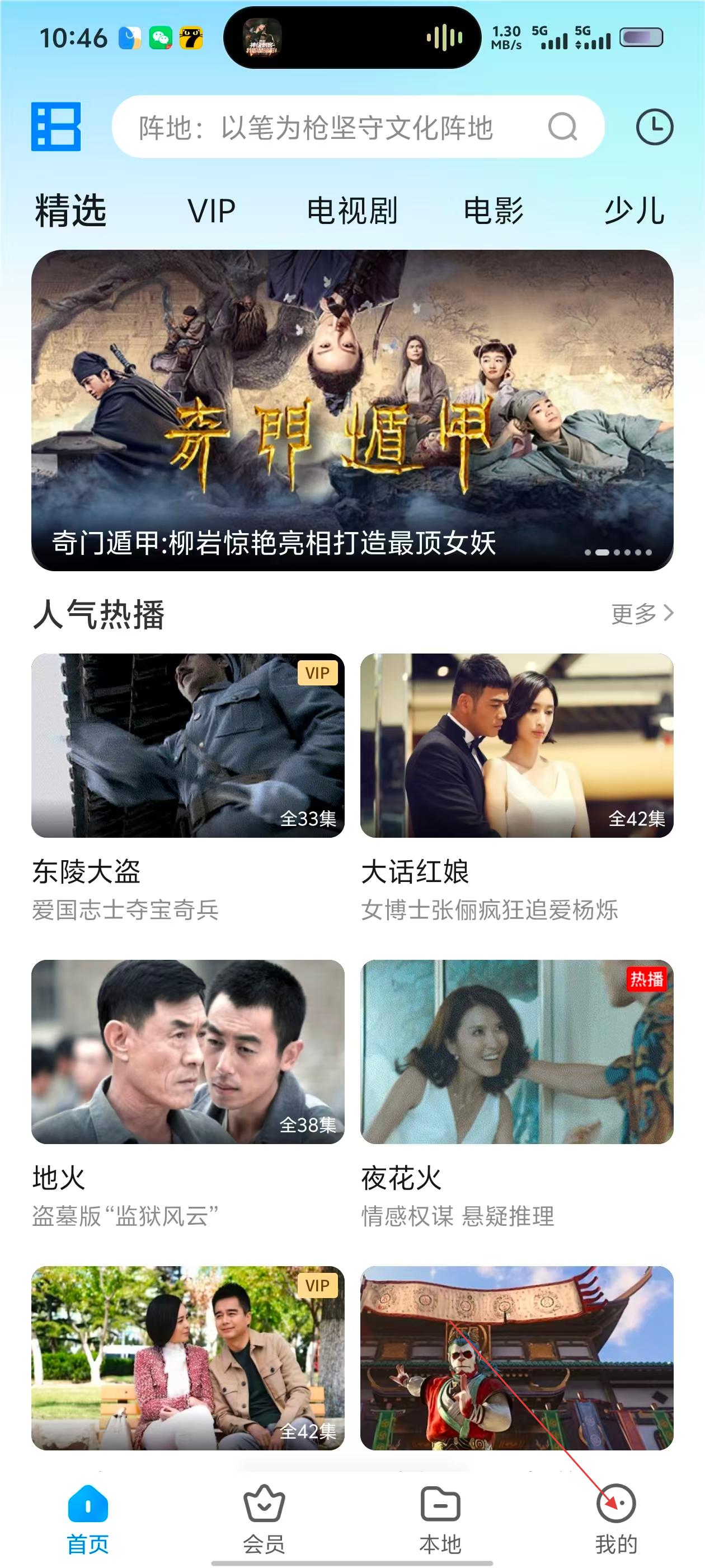1、打开暴风APP,首页有精选、VIP等分类及人气热播内容,点击右下角【我的】进入个人页面。