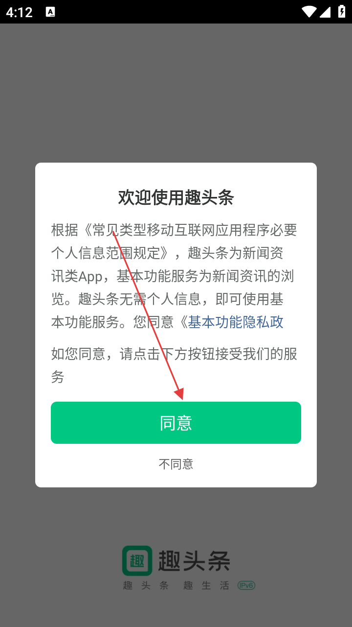1、首先,会看到应用的隐私政策等相关提示界面,仔细阅读后,点击【同意】按钮,进入应用主界面。