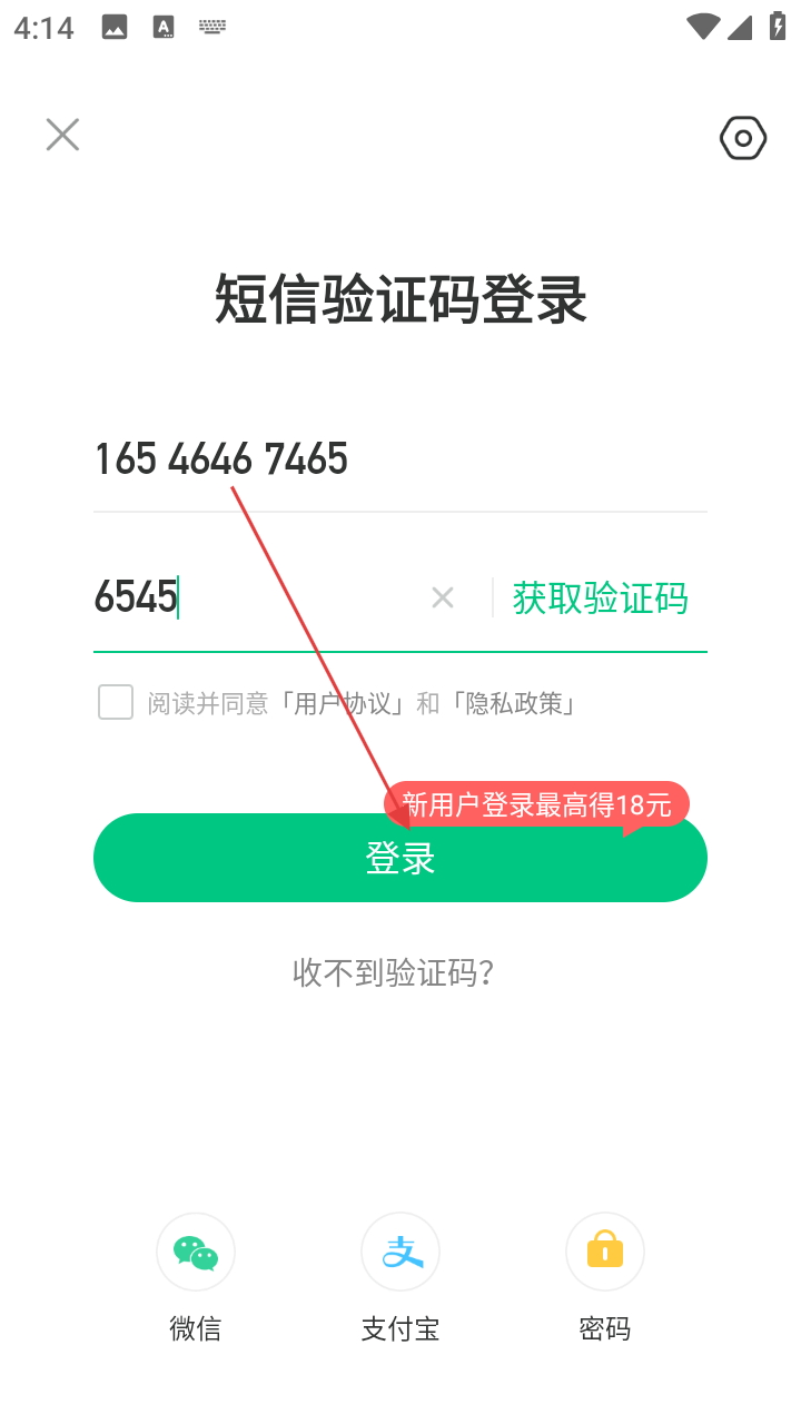 4、输入手机号后,点击【获取验证码】,待收到验证码后,将其输入到验证码输入框,最后点击【登录】按钮完成登录操作。