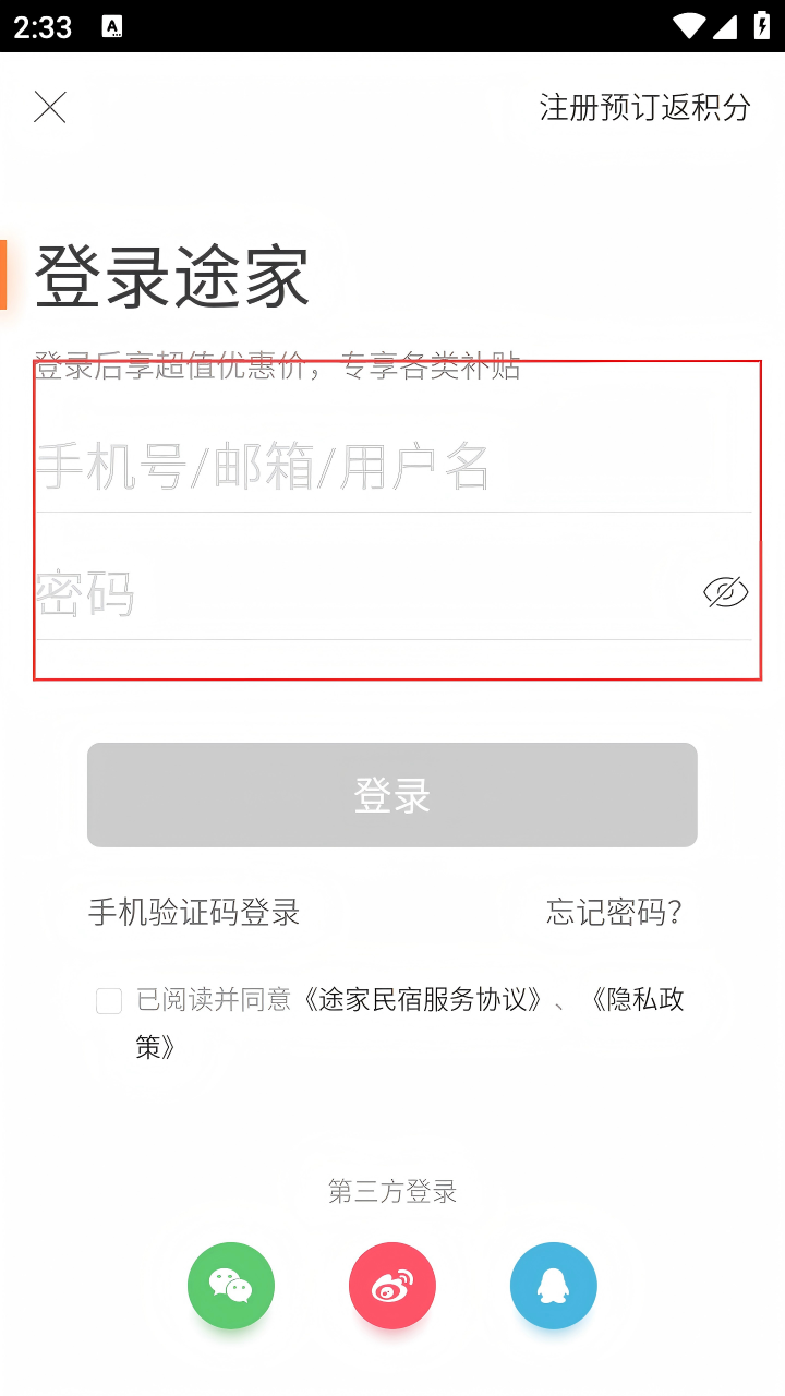 4、在账号密码登录页面,输入手机号/邮箱/用户名和密码,勾选同意相关协议后,点击【登录】完成登录。