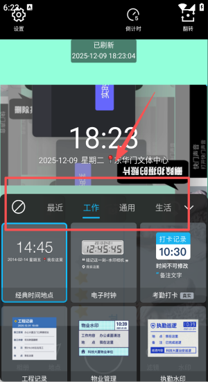 2、选经典时间地点水印对准场景,轻点刷新获取实时定位与日期。