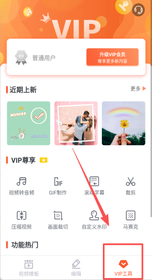 4、点击升级VIP解锁视频转音频GIF制作裁剪压缩去水印功能。
