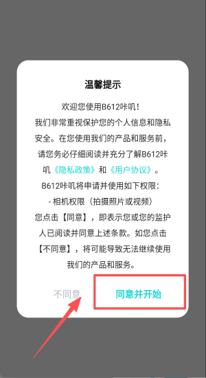 1、阅读隐私政策后点击“同意并开始”,授予相机权限进入拍摄页。