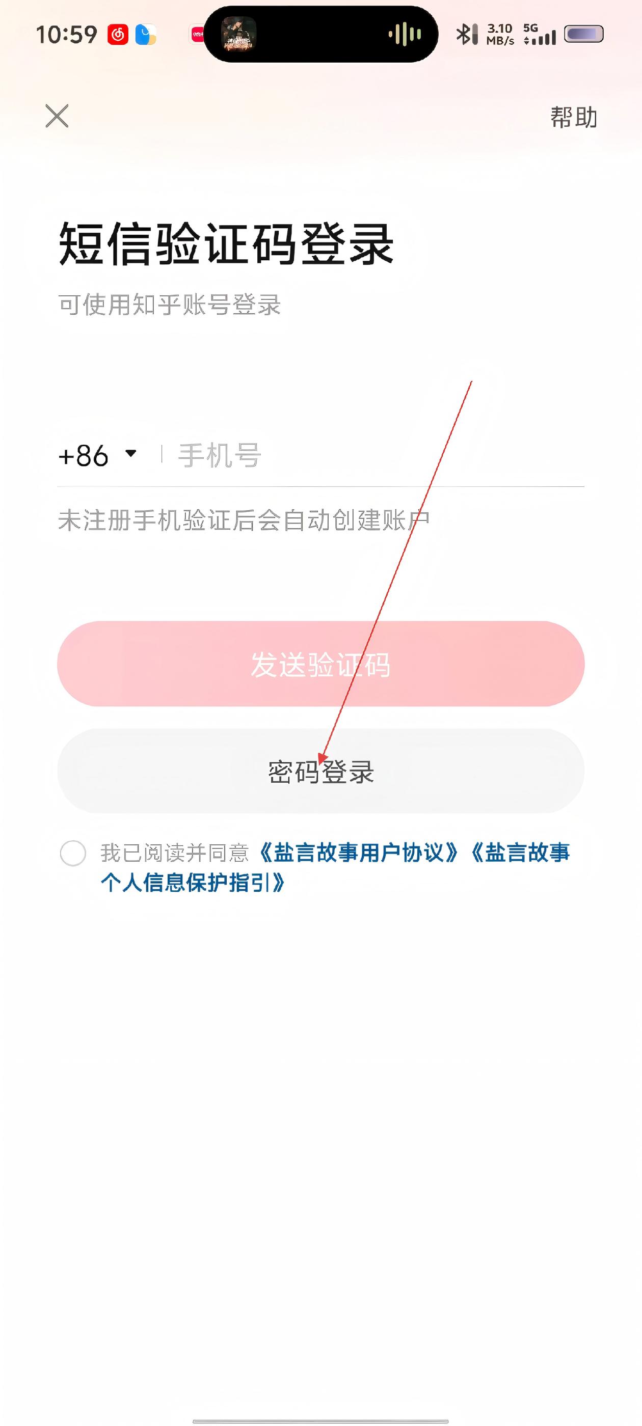 3、进入密码登录界面,输入【手机号】和【密码】。