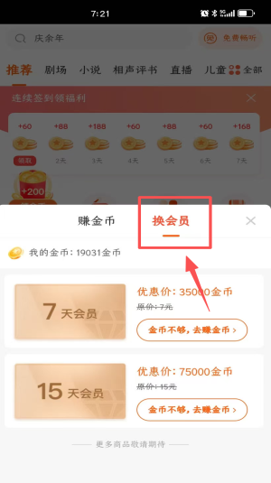 4、金币达75000进福利中心,零元换15天会员畅听整本庆余年。