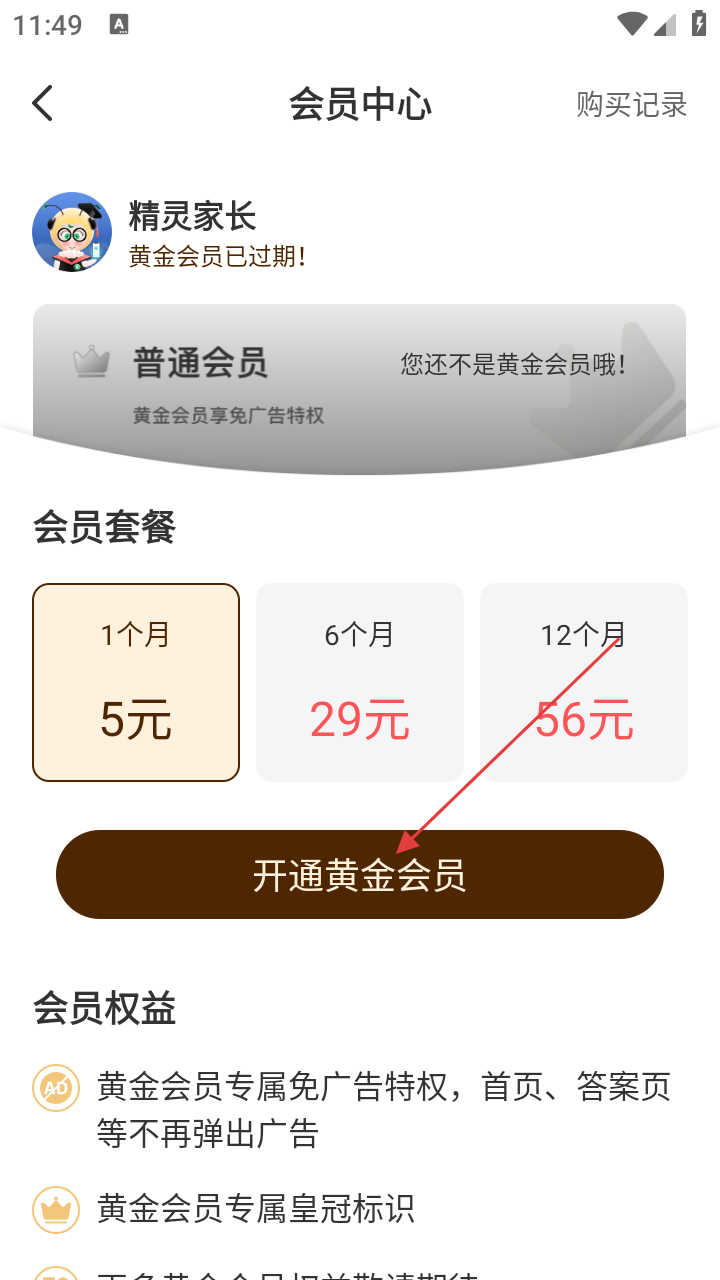 3、进入【会员中心】,可看到会员套餐,开通黄金会员可享免广告等权益,点击【开通黄金会员】可进入支付环节。