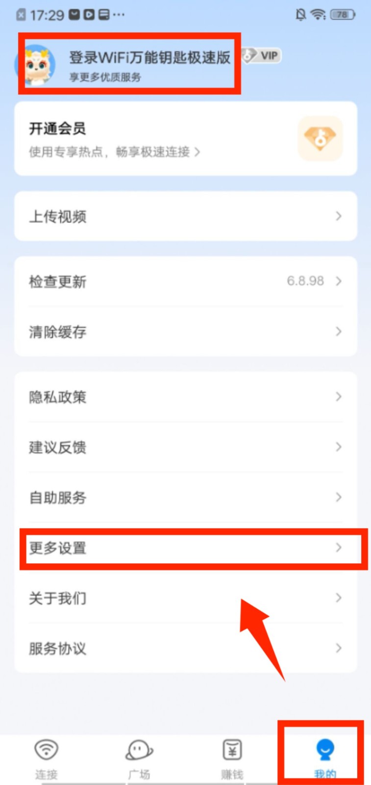 4、进入 “我的” 页面,在功能列表里选择 “更多设置”,能调整软件相关的配置选项。
