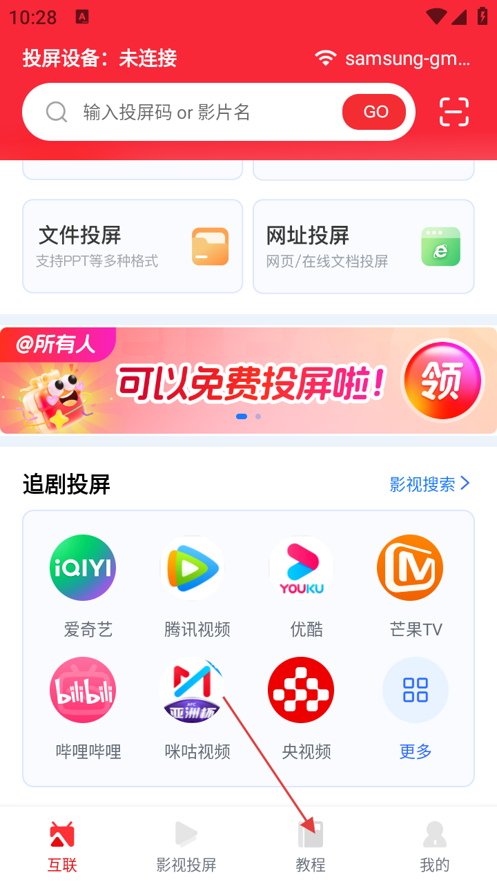 2、进入乐播投屏主界面后,点击底部导航栏中的【教程】选项。