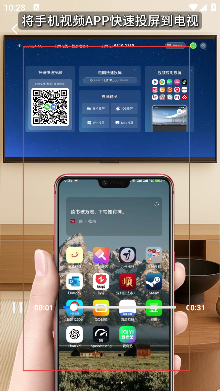 软件能够将手机的屏幕内容无线投射到电视、电脑、投影仪等大屏设备上,让用户可以在家中享受大屏幕的观影体验。该软件支持多种设备的连接,操作简单,画质清晰,是用户在家中进行大屏娱乐的理想选择。