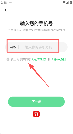 3、输入手机号并勾选已阅读协议,完成手机号验证注册。