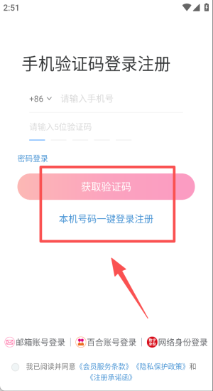 1、输入手机号获取验证码,勾选协议后一键登录开启寻爱之旅。