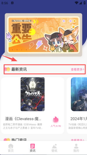 1、在 “资讯” 页面的 “最新资讯” 板块,点击 “查看更多”,可进入对应的资讯列表页面。