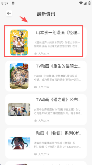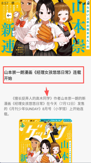 2、在最新资讯列表中,能看到山本崇一朗新漫画《经理女孩悠悠日常》的连载开启信息。