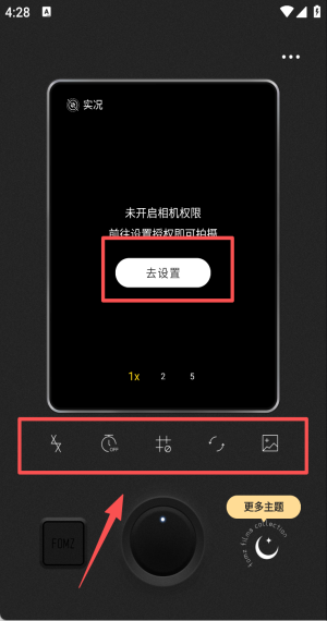 2、按提示去设置开启相机权限,返回后即可使用实况与更多主题进行拍摄。