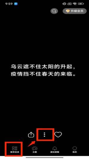 2、接着进入单条语录页面,点击左下角 “推荐语录”,再点右上角三点图标,调出操作菜单。