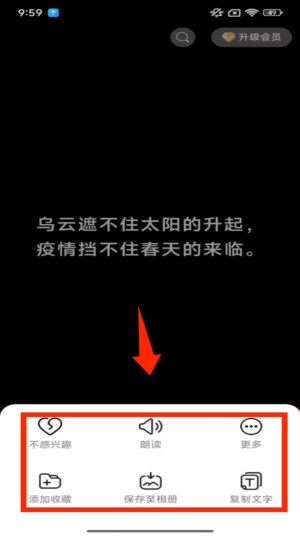 3、然后在弹出的菜单中,可选择朗读、添加收藏、保存至相册,或是复制这条语录的文字内容。