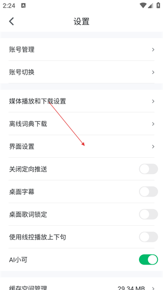 3、在设置页面中,包含【账号管理】【界面设置】等选项,点击【界面设置】可进入界面相关配置页。