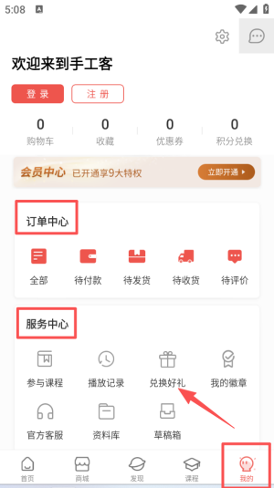 3、切换到个人中心页面,可看到订单中心与服务中心板块,订单中心含待付款、待发货等分类,服务中心有多种功能入口。