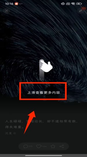 2、接着在内容展示区域,按照提示上滑页面,就能加载并查看更多的句读内容,获取更多文字信息。