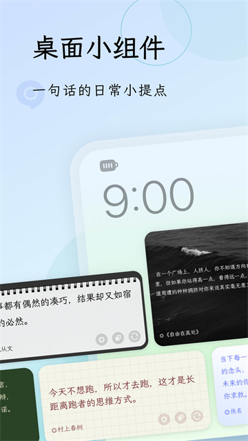 每天为用户提供一句令人赏心悦目的话语。这款软件旨在通过简短的文字,传递正能量和积极的生活态度,帮助用户在忙碌的生活中寻找片刻的宁静和快乐。