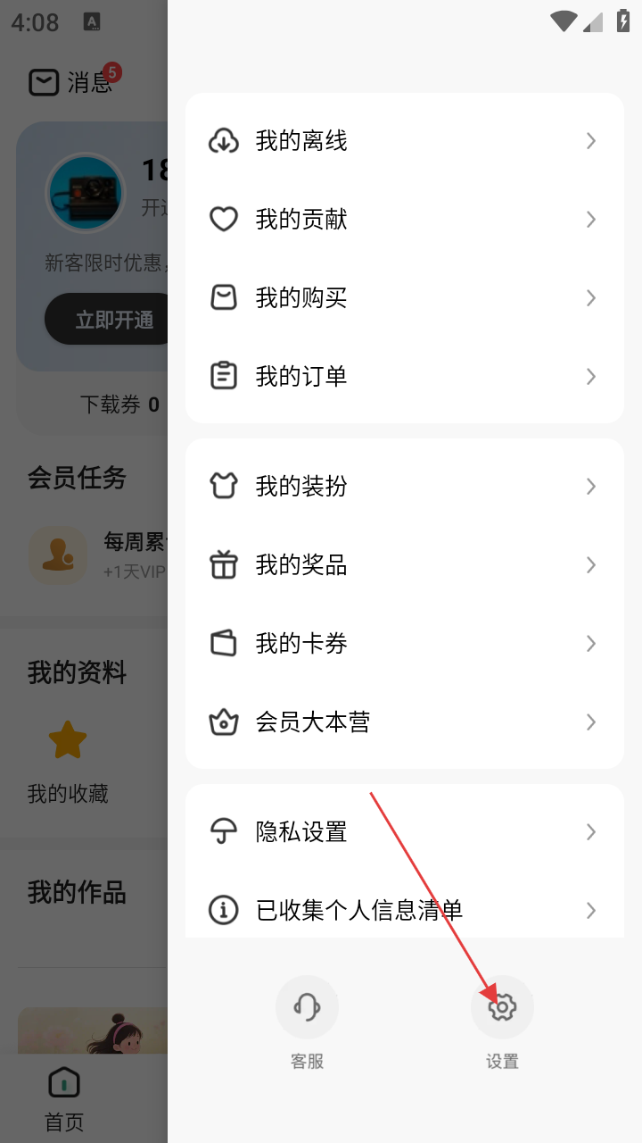 2、在弹出的菜单中,找到并点击【设置】选项,进入设置界面。