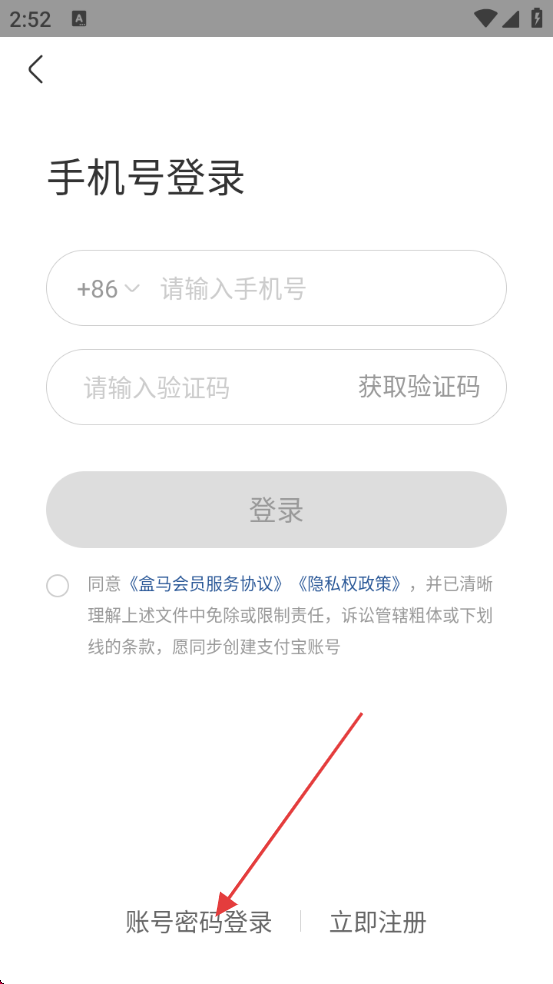 2、在【我的】页面,点击账号密码登录入口进入账号密码登录页面。