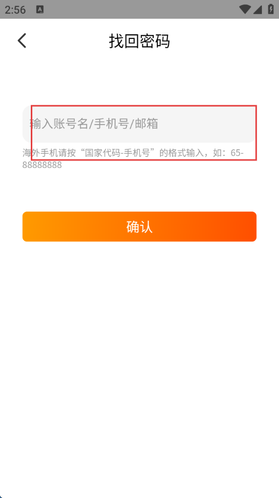 4、在找回密码页面,输入账号名/手机号/邮箱,点击【确认】,按照提示完成密码找回流程,即可重新登录盒马APP。