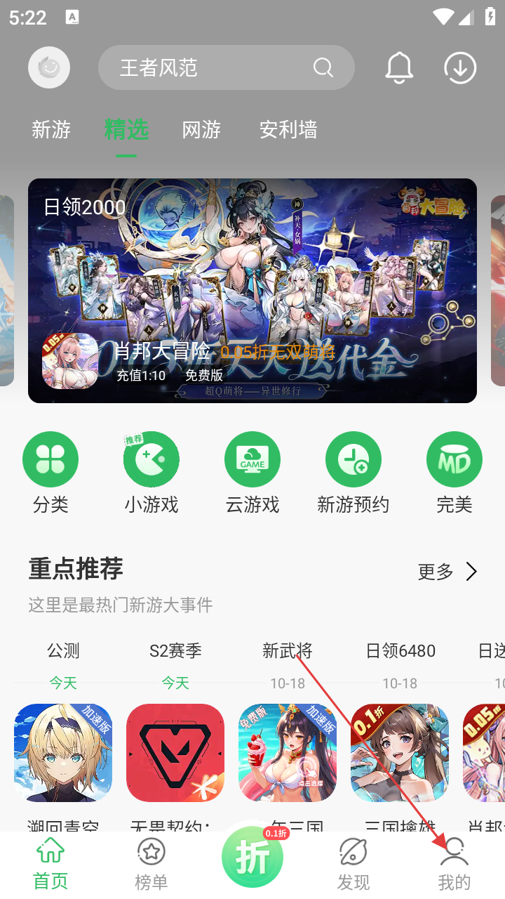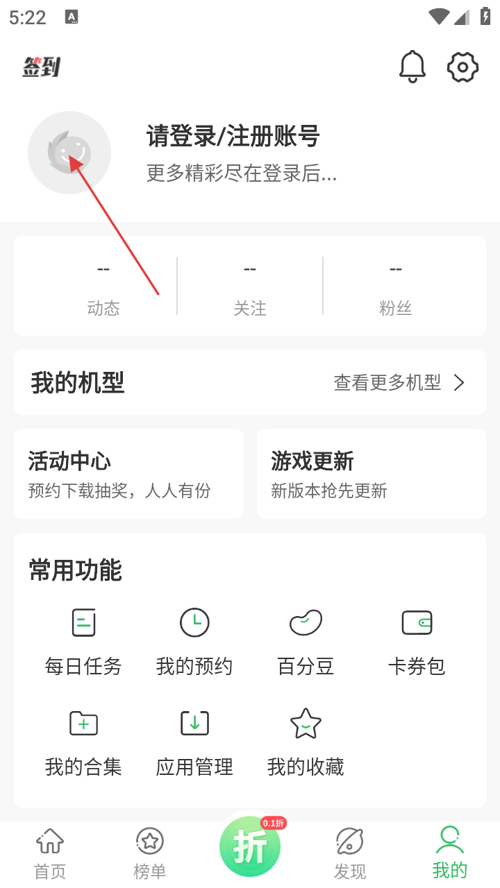 1、在百分网游戏盒首页,若想进入个人相关页面,点击底部【我的】,切换到“我的”页面。