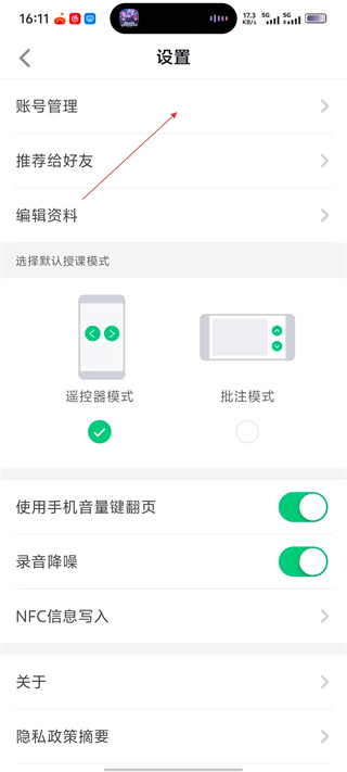 3、在设置界面,点击“账号管理”选项,可进行账号相关的各项管理操作。