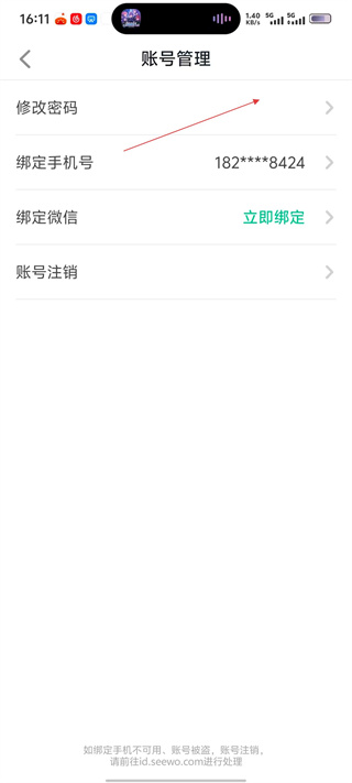 4、进入账号管理页面后,可点击“修改密码”选项,按照提示完成密码修改操作。